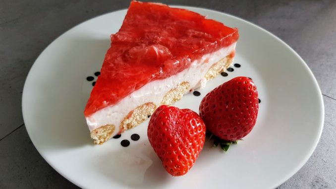 - Připravte si želé dle návodu - já jsem to své rozmíchala v půl litru odkapané syrovátky (vyšlo mi jí zhruba 400 ml a 100 ml jsem doplnila vodou) a minutku svařila. Pak je potřeba chvíli počkat, než želé vychladne. Kdybyste jej na krém totiž nalévali horké, rozteklo by se všude a rozmočilo krém i piškot. Vytrvejte tedy minimálně až do chvíle, kdy bude mít želé pokojovou teplotu a využijte tento čas k očištění a nakrájení jahod, které navrstvíte na krém. Závěrem tedy ještě ono vychladlé želé, ještě chvilka tuhnutí v lednici a pak už opravdu můžete začít mlsat ;-)